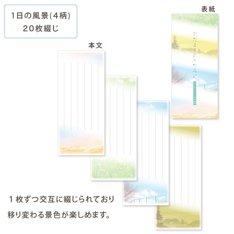 1日の風景(4柄)が1つの便箋で楽しめる小型便箋