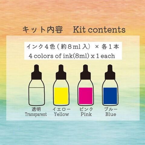 ・インク4色(8ml):透明、イエロー、ピンク、ブルー 各1本