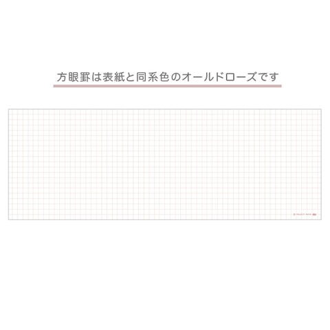 仕様:特抄上質紙64g/m2・5mm方眼淡オールドローズ罫・天のりクロス巻