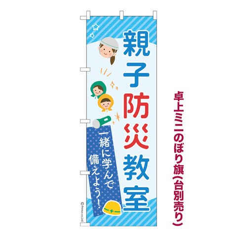 商品名「既製品ミニのぼり旗 親子防災教室3 高品質デザイン メール便可」