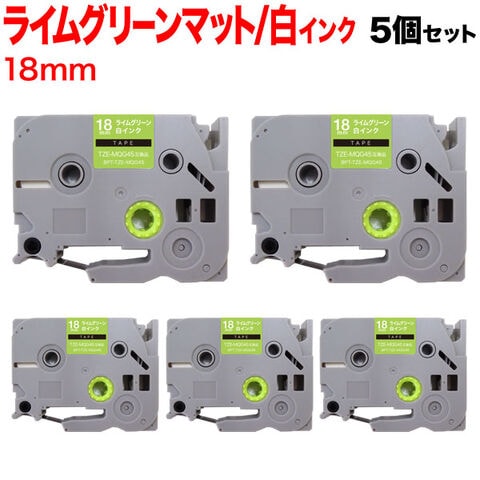 ブラザー用 ピータッチ 互換 テープ TZE-MQG45 おしゃれテープ ラベルカートリッジ 5個セット 18mm/ライムグリーン(つや消し)テープ/白文字/おしゃれテープ