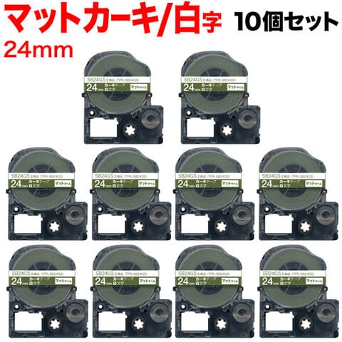 キングジム用 テプラ PRO 互換 テープカートリッジ SB24GS マットラベル 強粘着 10個セット 24mm/カーキテープ/白文字/マットラベル