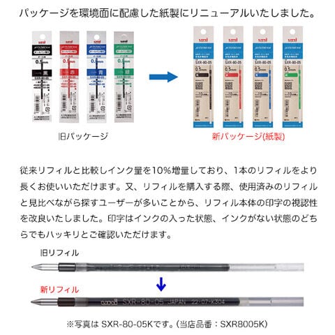 環境面の取り組みとしてリフィルの品質を維持できる紙製のパッケージを採用し、インク量を10%増量した新モデルです。