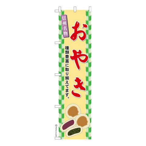 商品名「のぼり旗 おやき 既製品のぼり 高品質デザイン【メール便可】」