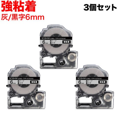 キングジム用 テプラ PRO 互換 テープカートリッジ SC6HW カラーラベル 強粘着 3個セット 6mm/灰テープ/黒文字