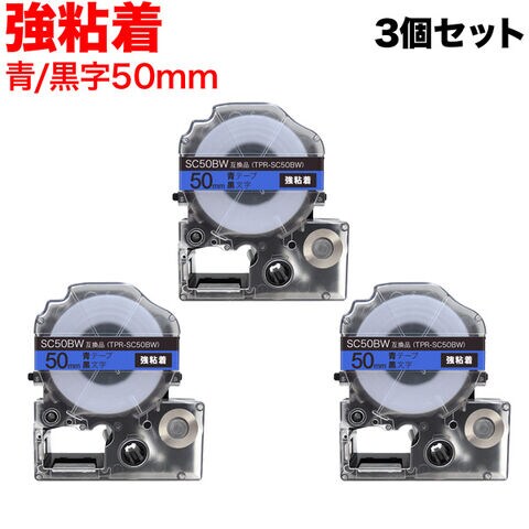 キングジム用 テプラ PRO 互換 テープカートリッジ SC50BW カラーラベル 強粘着 3個セット 50mm/青テープ/黒文字