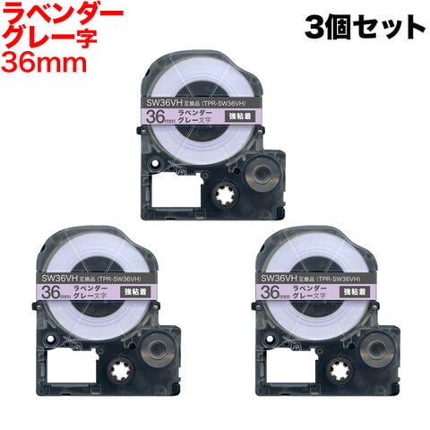 キングジム用 テプラ PRO 互換 テープカートリッジ ソフト SW36VH ラベンダーテープ 強粘着 3個セット 36mm/ラベンダーテープ/グレー文字