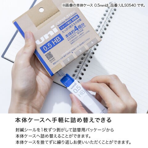 【メール便可】学生の声から生まれた、段ボール素材の『ユニ シャープ替芯 詰替用 0.5mm』が登場。