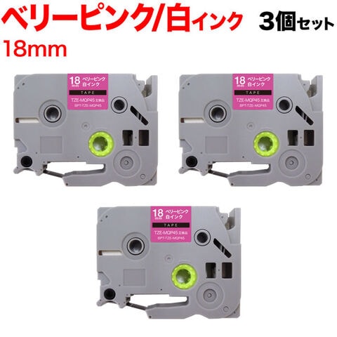 【メール便送料無料】 ブラザー用(Brother用) ピータッチ 互換 テープ BPT-TZE-MQP45-18BPW-3P (18mm/ベリーピンク(つや消し)テープ/白文字/おしゃれテープ)