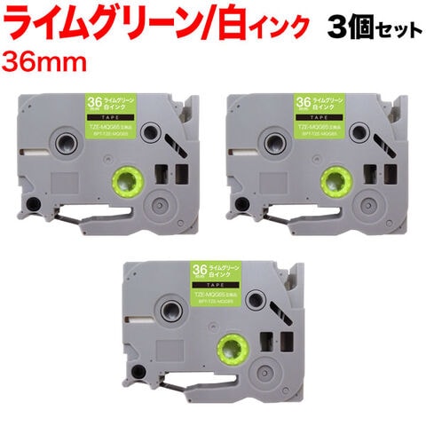 ブラザー用 ピータッチ 互換 テープ TZE-MQG65 おしゃれテープ ラベルカートリッジ 3個セット 36mm/ライムグリーン(つや消し)テープ/白文字/おしゃれテープ