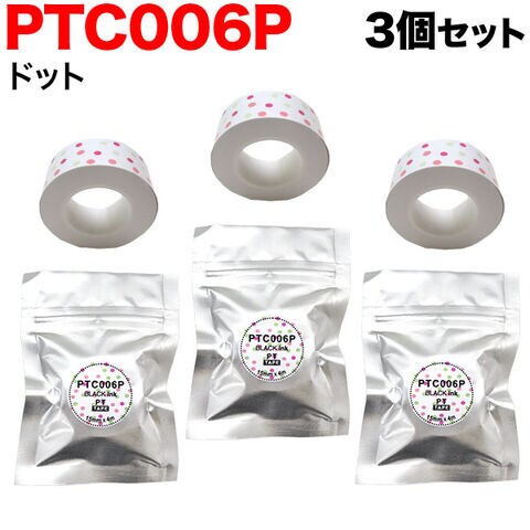 キングジム用 テプラ Lite 互換 テープカートリッジ 感熱紙 PTC006P 3個セット 15mm/ドット柄/黒文字