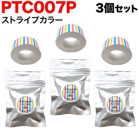 キングジム用 テプラ Lite 互換 テープカートリッジ 感熱紙 PTC007P 3個セット 15mm/ストライプカラー柄/黒文字