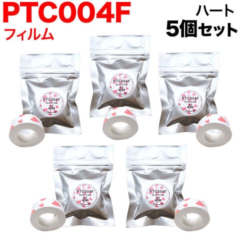 キングジム用 テプラ Lite 互換 テープカートリッジ フィルムテープ PTC004F 5個セット 15mm/ハート柄/黒文字