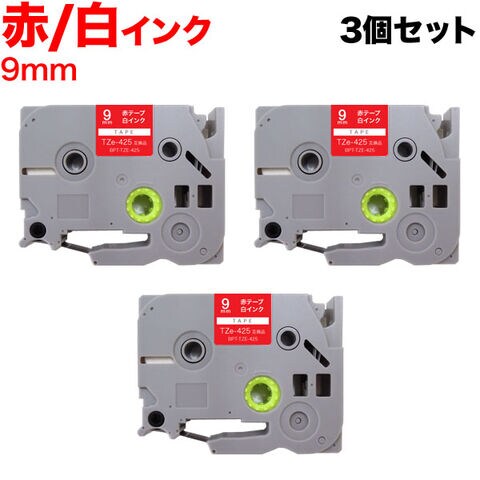 ブラザー用 ピータッチ 互換 テープ TZe-425 ラベルカートリッジ 3個セット ピータッチキューブ対応 9mm/赤テープ/白文字