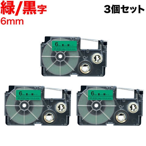 カシオ用 ネームランド 互換 テープカートリッジ XR-6GN ラベル 3個セット 6mm/緑テープ/黒文字