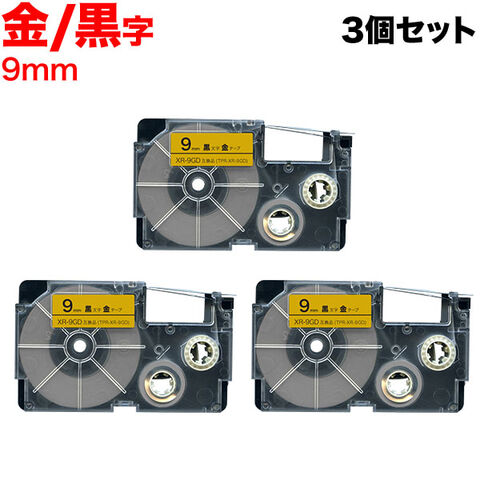 カシオ用 ネームランド 互換 テープカートリッジ XR-9GD ラベル 3個セット 9mm/金テープ/黒文字