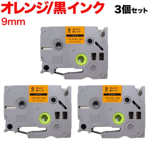 ブラザー用 ピータッチ 互換 テープ TZE-SC9D ラベルカートリッジ ピータッチキューブ対応 3個セット 9mm/オレンジテープ/黒文字