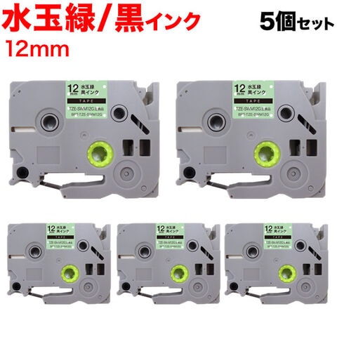 ブラザー用 ピータッチ 互換 テープ TZE-SWM12G 模様ラベル ラベルカートリッジ ピータッチキューブ対応 5個セット 12mm/水玉緑テープ/黒文字/模様ラベル