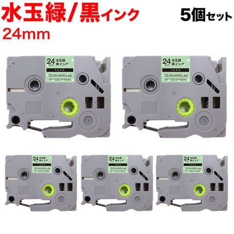 ブラザー用 ピータッチ 互換 テープ TZE-SWM24G 模様ラベル ラベルカートリッジ ピータッチキューブ対応 5個セット 24mm/水玉緑テープ/黒文字/模様ラベル