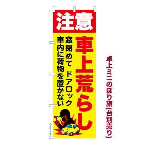 商品名「既製品ミニのぼり旗 注意 車上荒らし 高品質デザイン メール便可」