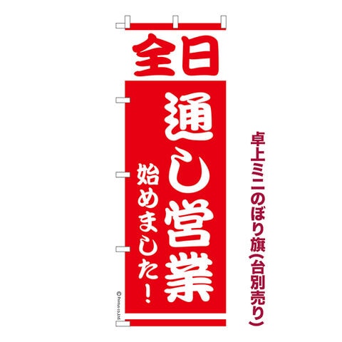 商品名「既製品ミニのぼり旗 全日 通し営業 始めました! 高品質デザイン メール便可」