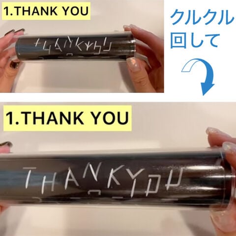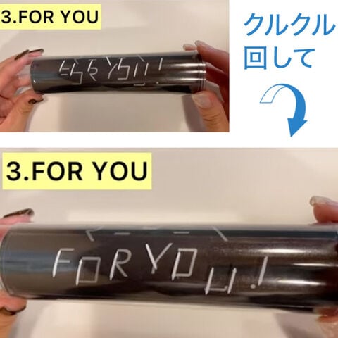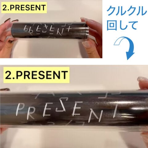 外側のPET部分をクルクル回すと、内側の紙に印刷してあるデザインの重なりによって