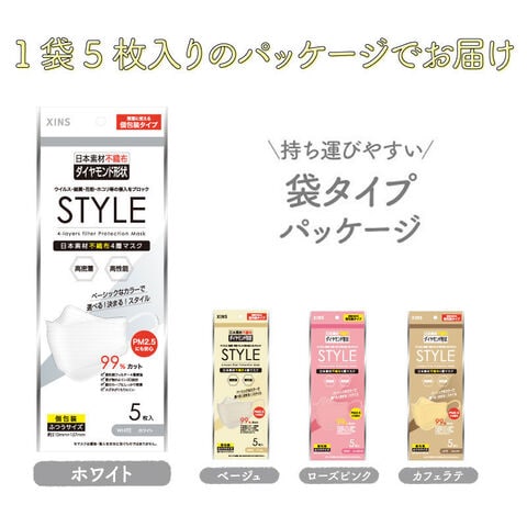 4層フィルター&立体構造でしっかりガード! なのに息がしやすい! カラーバリエーション豊富な「STYLEマスク」 20枚入。