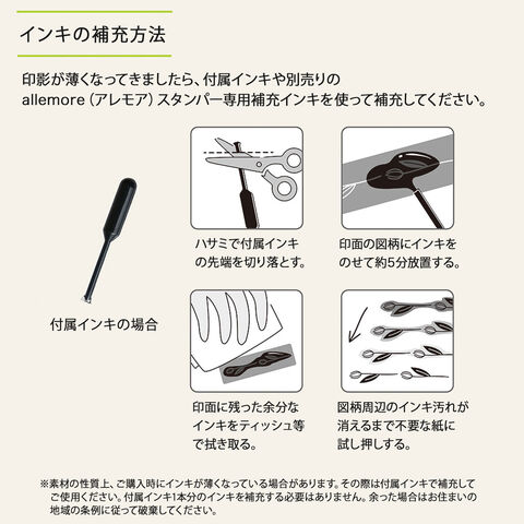 「allemoreスタンパー専用補充インキ 5ml」は、品番:PEL-5からご覧ください。