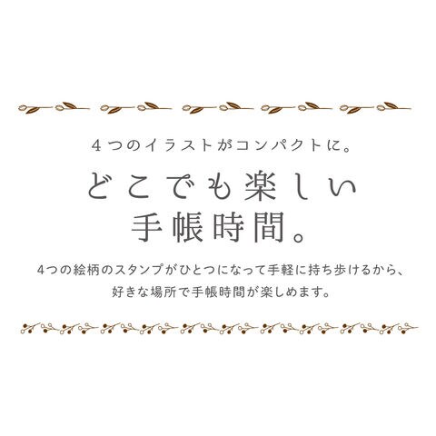 4つの絵柄のスタンプがひとつになって手軽に持ち歩けるから、