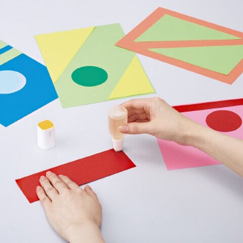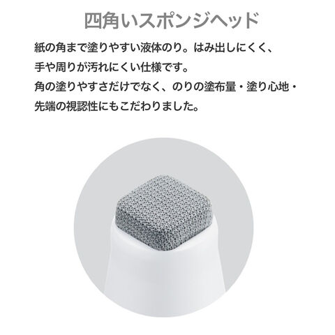 四角いスポンジヘッドで紙の角へ塗りやすく、のりがはみ出しにくい!