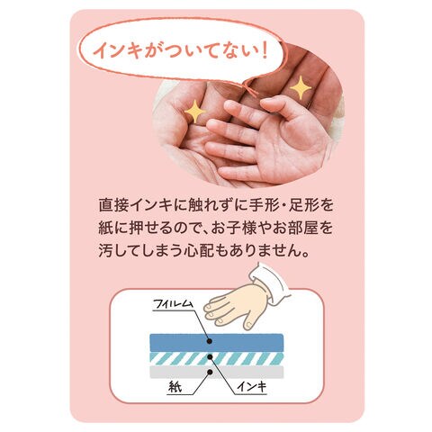 お子様が直接インキに触れずに紙に手形・足形を転写できます。