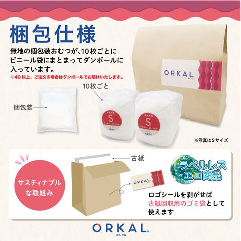 オルカル 大人用紙おむつ うす型 大人用 紙おむつ 紙パンツ オーガニックコットン 男性 女性 2回吸収 S M L XL サイズ 介護 災害 ORKAL XLサイズ