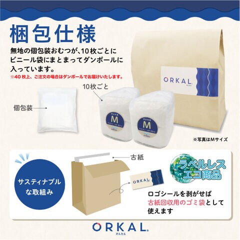 オルカル 大人用紙おむつ うす型 大人用 紙おむつ 紙パンツ オーガニックコットン 男性 女性 4回吸収 S M L XL サイズ 介護 災害 ORKAL Mサイズ