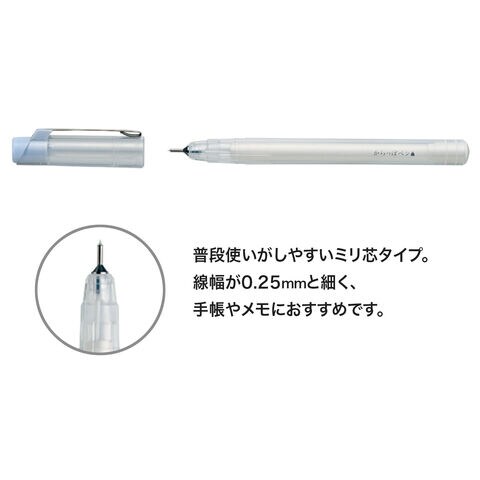 素材:ボディ:PP、キャップ:PP、クリップ:SUS、尾栓:PP、ペン先:POM