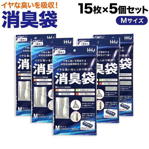 消臭袋 Mサイズ 不快な臭いを吸収 ペットのフン おむつ処理 介護 生ゴミ 便袋 防災 災害 避難 非常用 75枚(15枚入 5個セット)