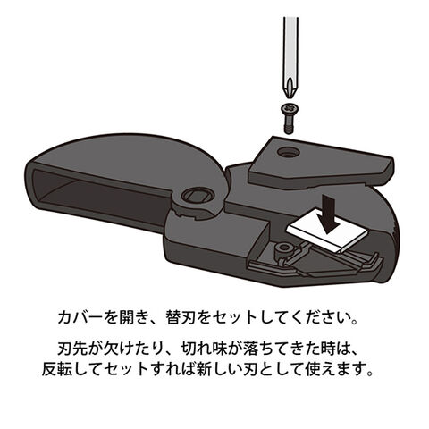 刃先が欠けたり、切れ味が落ちてきた時は、反転してセットすれば新しい刃として使えます。