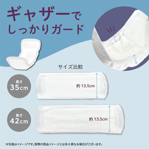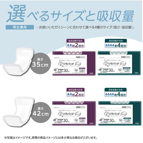 吸収量は2回分(1回の排尿量150mlとして)、2サイズ(35cmと42cm)をご用意。