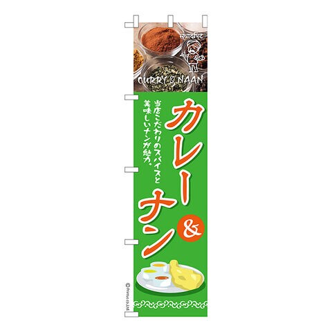 スリム のぼり旗 カレー & ナン curry 1枚より 既製品のぼり 納期相談ください 450mm幅