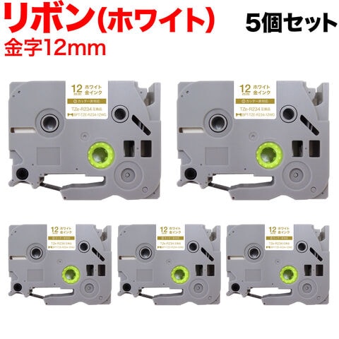 ブラザー用 ピータッチ 互換 テープ TZE-R234 リボンテープ カートリッジ ピータッチキューブ対応 5個セット 12mm/ホワイト/金文字/リボンテープのレビュー