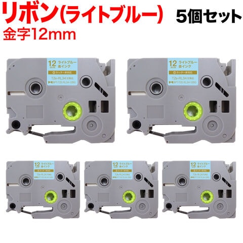 ブラザー用 ピータッチ 互換 テープ TZE-RL34 リボンテープ カートリッジ ピータッチキューブ対応 5個セット 12mm/ライトブルー/金文字/リボンテープ