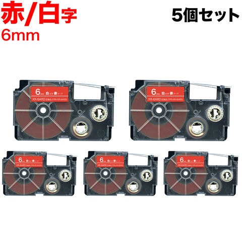 カシオ用 ネームランド 互換 テープカートリッジ XR-6ARD 5個セット 6mm/赤テープ/白文字