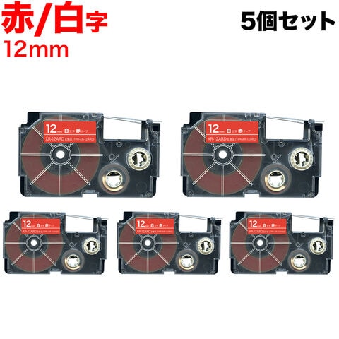 カシオ用 ネームランド 互換 テープカートリッジ XR-12ARD 5個セット 12mm/赤テープ/白文字
