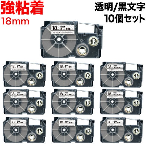 カシオ用 ネームランド 互換 テープカートリッジ 強粘着 XR-18GX 10個セット 18mm/透明テープ/黒文字