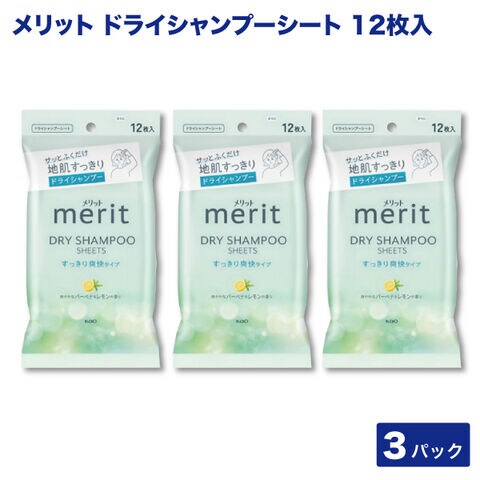 花王 メリット デイ 爽やかなバーベナ&レモンの香り ドライシャンプー 12枚入×3個 防災