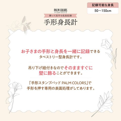 お子さまの手形と身長を一緒に記録できるタペストリー型身長計です。
