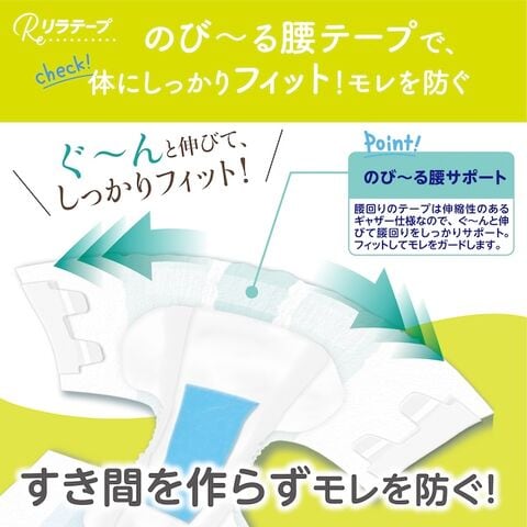 ・のび~る腰テープで体にフィット!モレを防ぎます。