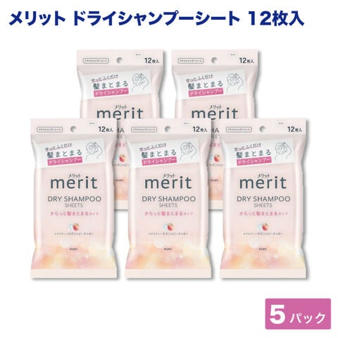 花王 メリット デイ シャンプー シート みずみずしいサボン&ピーチの香り ドライシャンプー 12枚入×5個 災害 朝シャン 防災