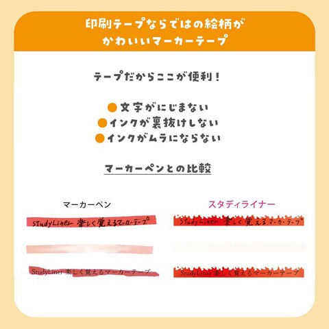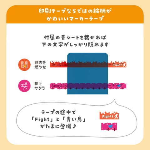 暗記ペンにはない楽しい柄で遊び心を加えたユニークな暗記テープ