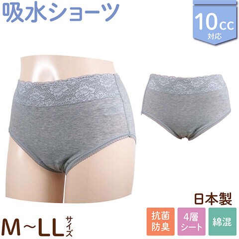 日本製 10cc 吸水ショーツ 婦人用 ウエストレース 女性用 シニア 軽失禁 サニタリー 下着 Lサイズ
