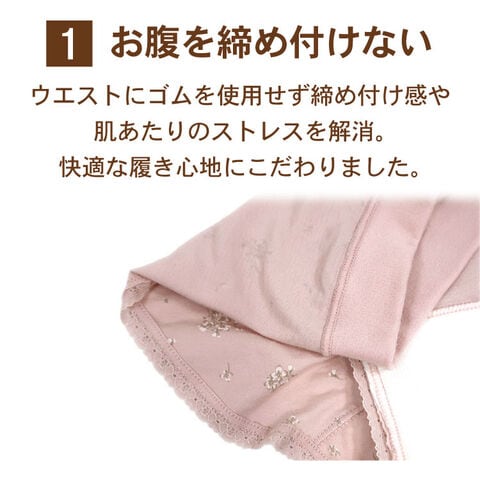 ・ウエストにゴムを使用せず締め付けや肌あたりのストレスを解消!